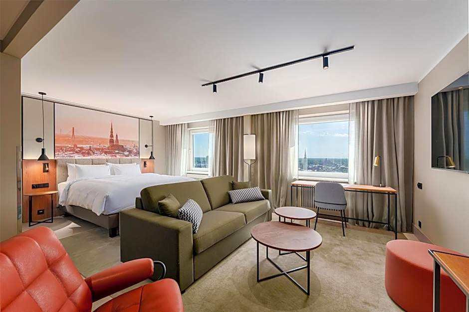 Comfortable room with a spacious living area, in-room mineral water, a flat-screen TV, and city views. Room rate includes complimentary access to ESPA Riga active leisure area with gym, saunas and pool.
